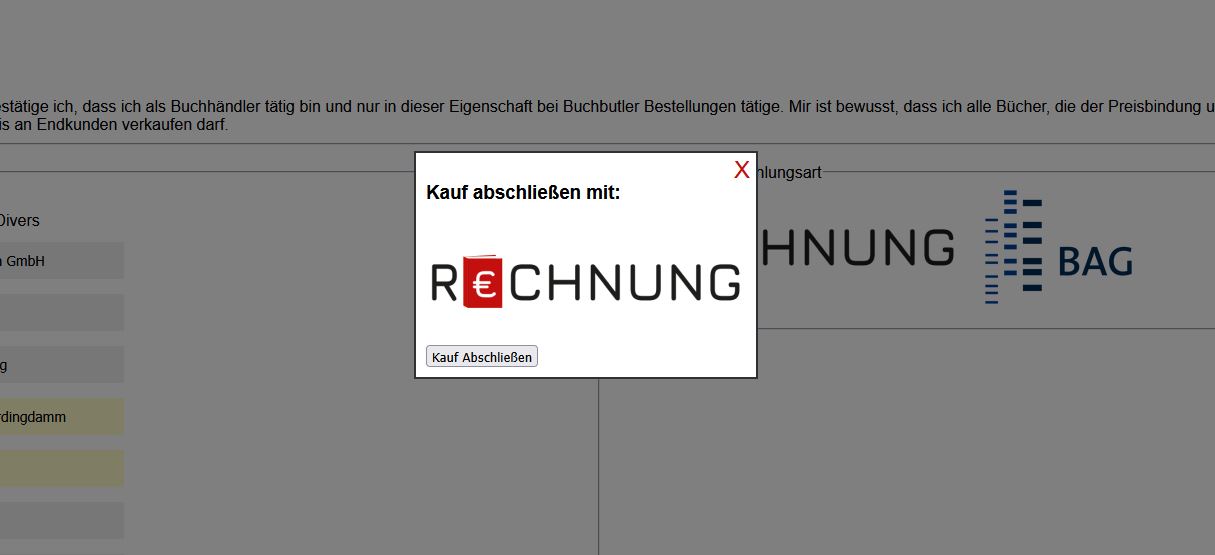 Nach dem Ausfüllen aller erforderlichen Felder wählen Sie bitte Ihre bevorzugte Zahlart aus. Wir bieten Ihnen die Abrechnung per Rechnung oder über die BAG an. - Kauf abschließen